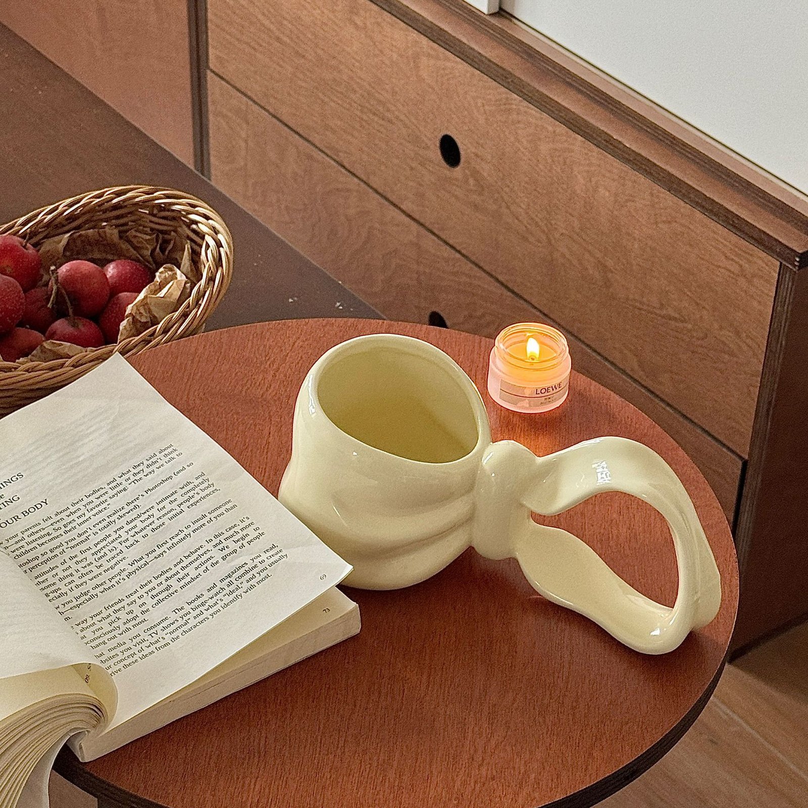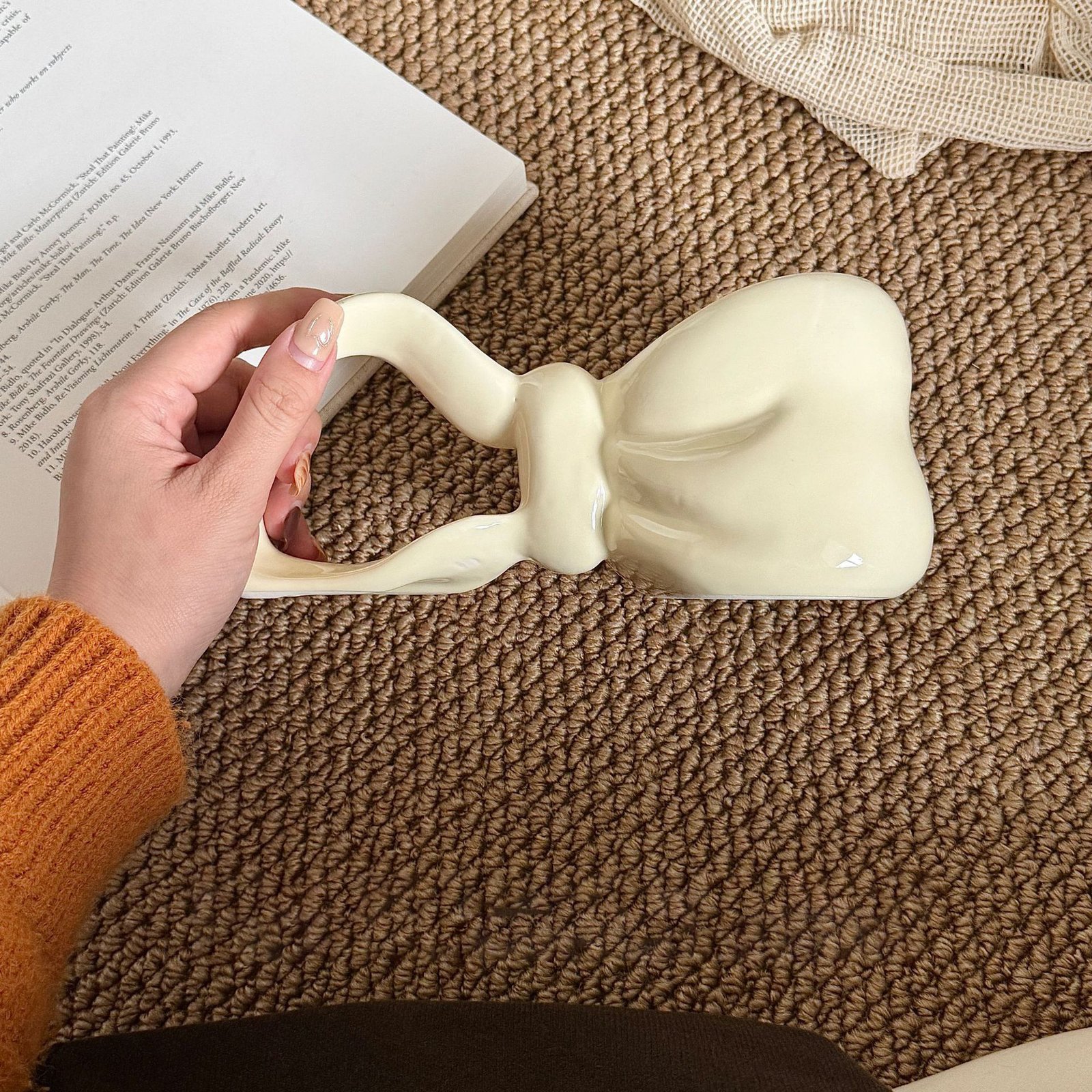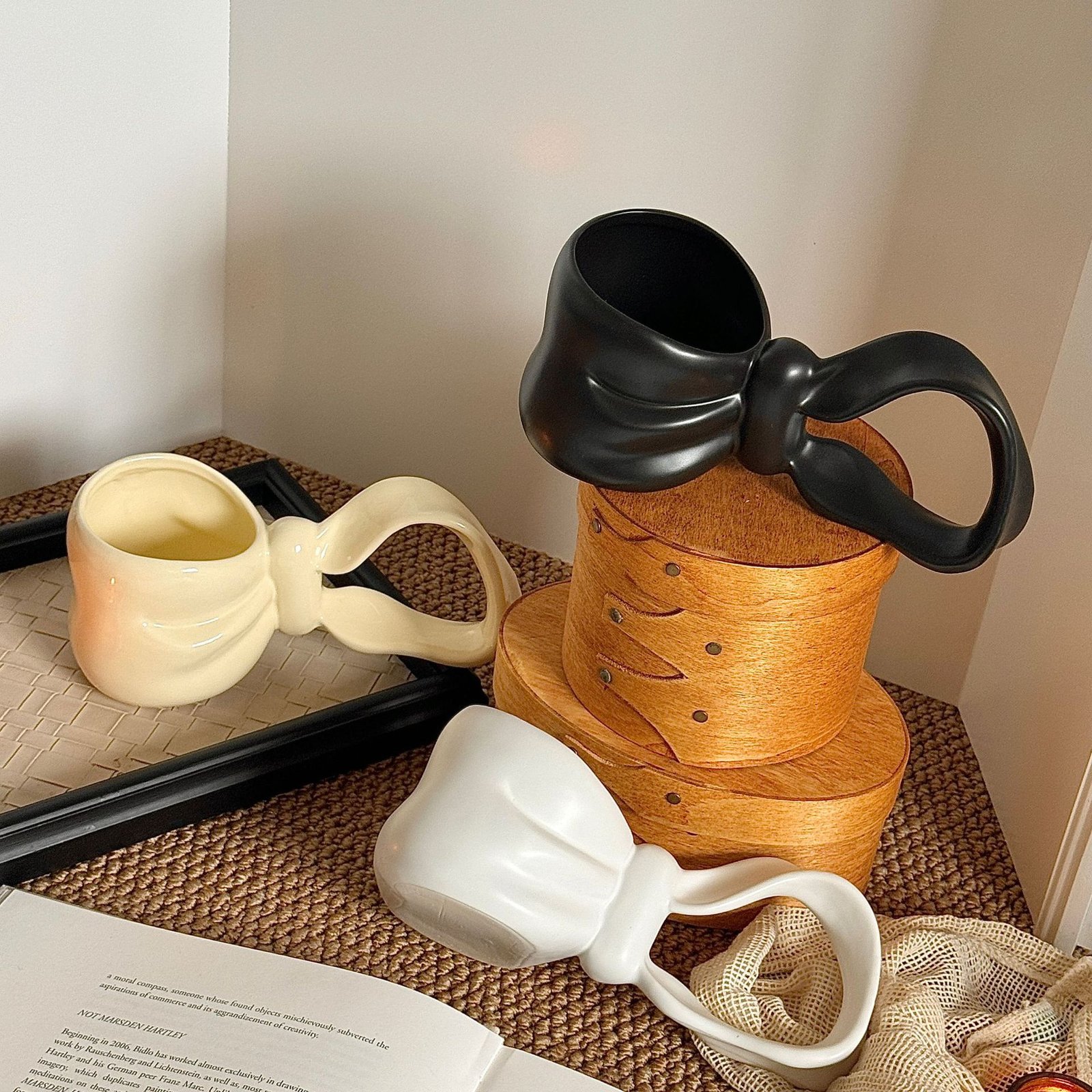 “3D Bow-Tie Ceramic Mug: Chic Sculptural Design for Stylish Sipping”