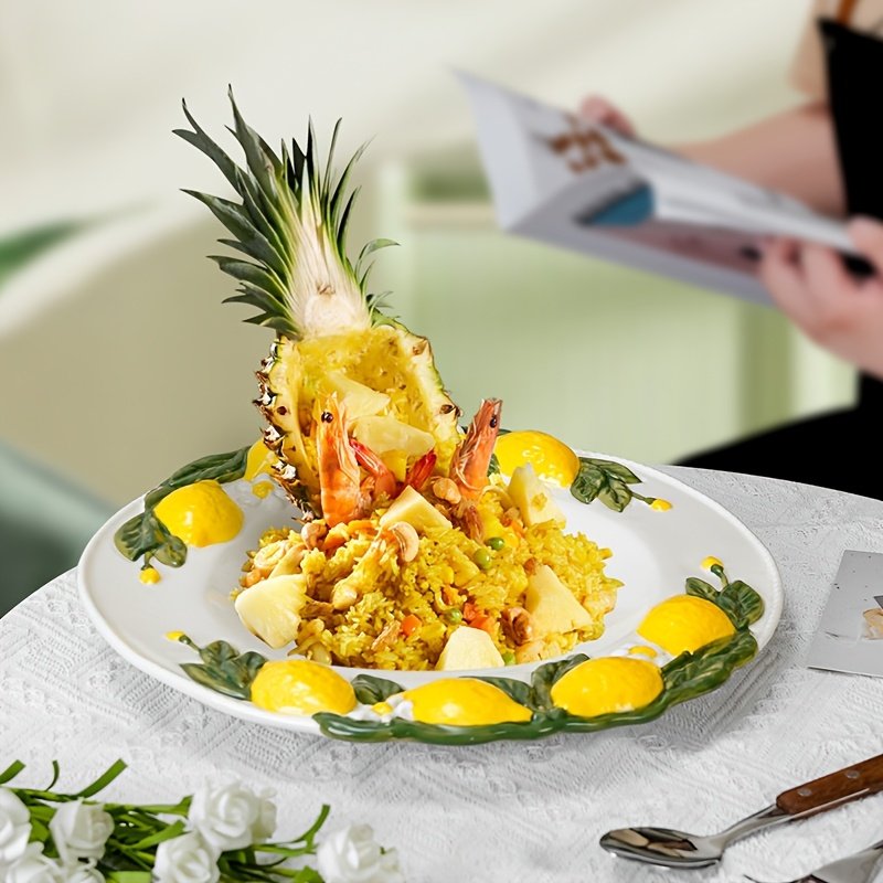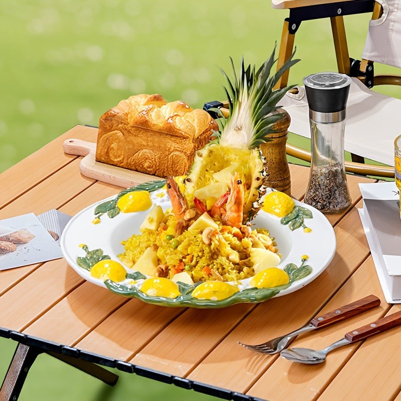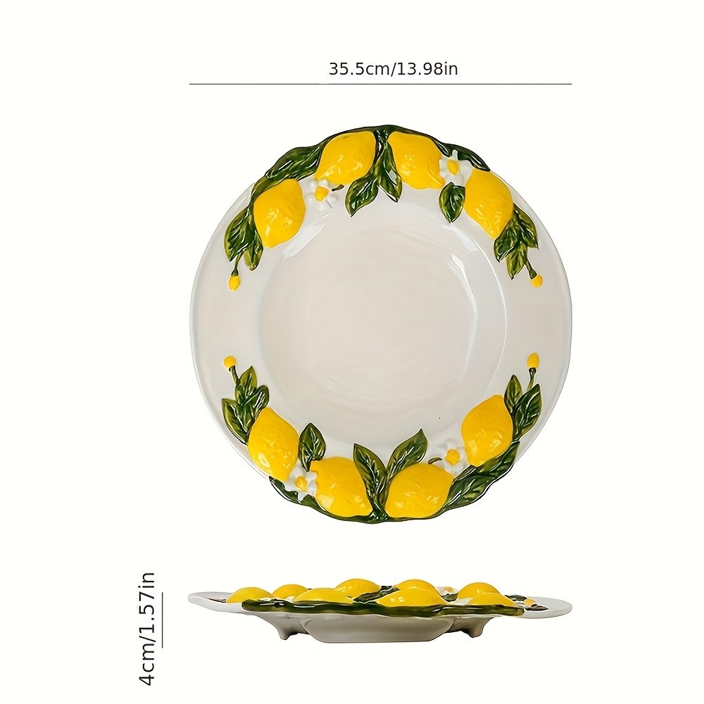 3D Lemon-Embellished Ceramic Serving Plate: Elevate Your Tropical Cuisine Presentation
