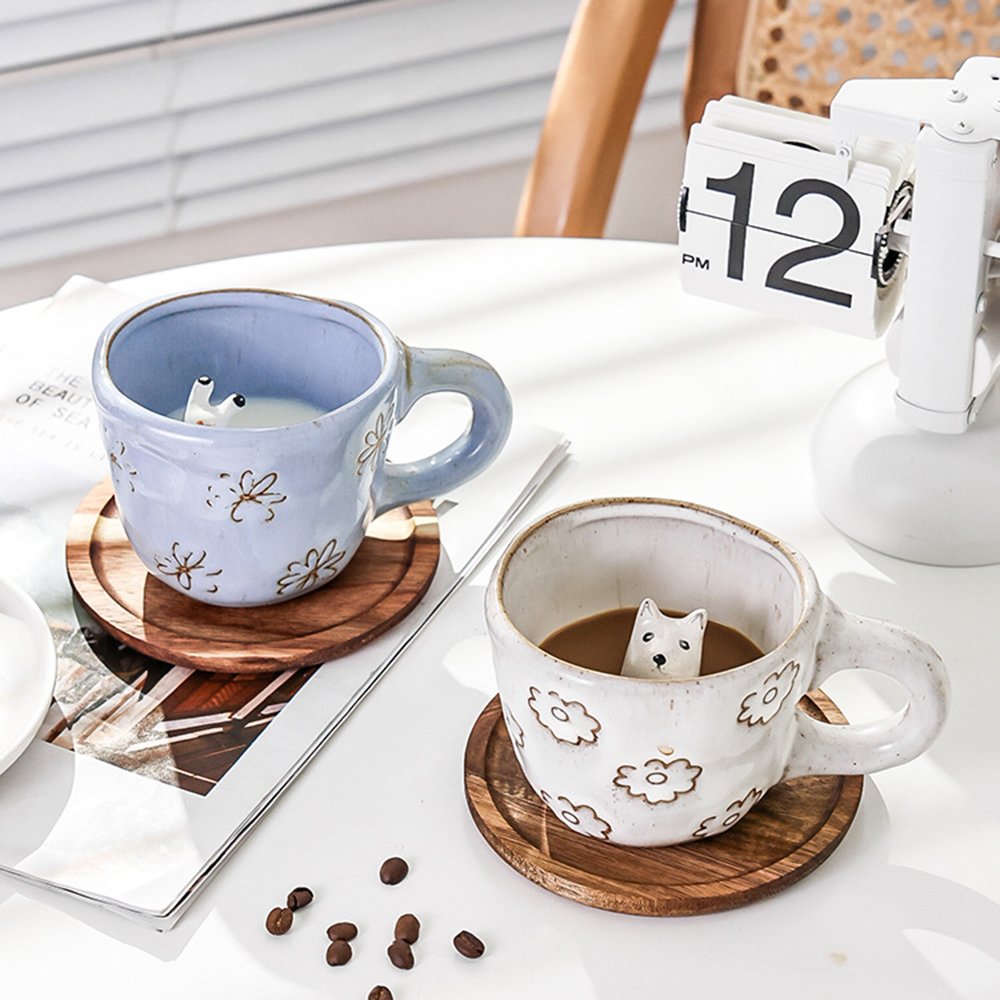 3D Puppy-Inside Ceramic Mug (Floral Pattern Cute Coffee Cup)