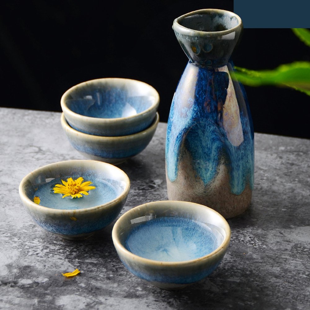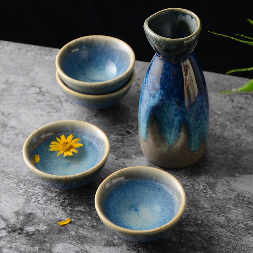 Exquisite Handcrafted Aesthetics: Features a striking blue and black glaze gradient, with each piece showcasing unique artisanal details, adding an artistic touch to your sake-drinking experience.