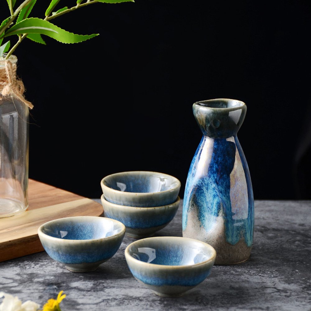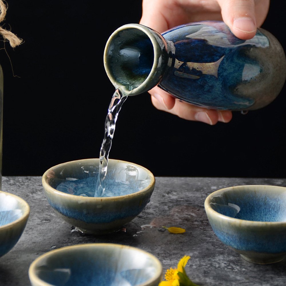 Artisan Blue-Glazed Sake Set: Elevate Your Sake Tasting with Handcrafted Elegance