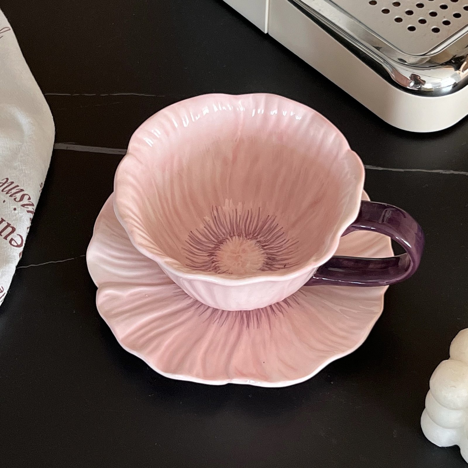 Lifelike 3D Flower Shape: Meticulously crafted with layered petal edges and gradient blush-purple details, mimicking a blooming poppy for a romantic, nature-inspired tabletop vibe.