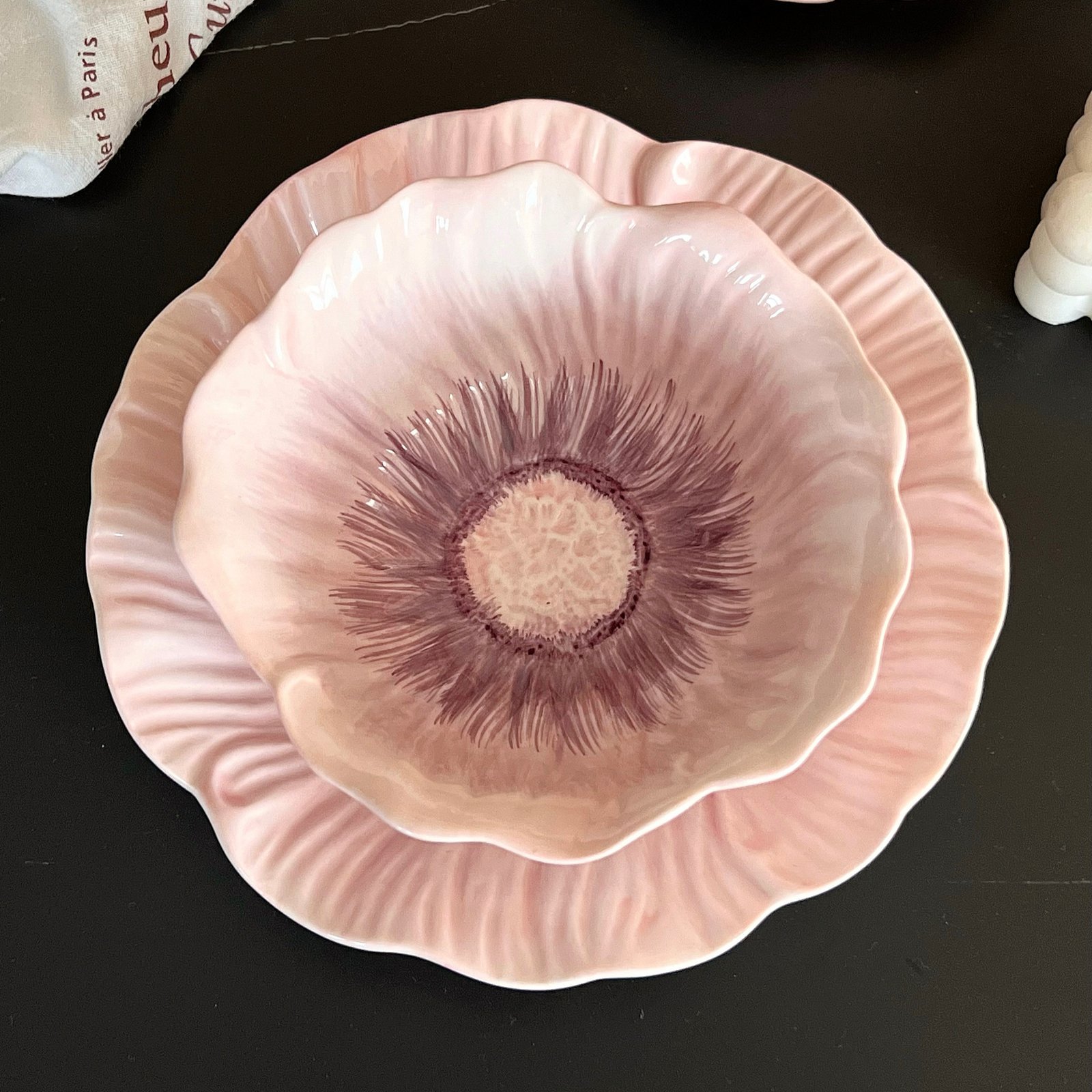 “Blush Poppy Flower Ceramic Tableware Set: Elegant 3D Petal Design for Stylish Dining”