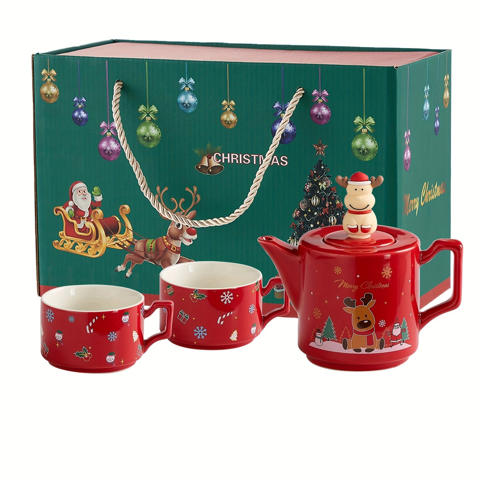 Components: Includes a teapot and two matching cups, ideal for sharing festive drinks with family or friends.