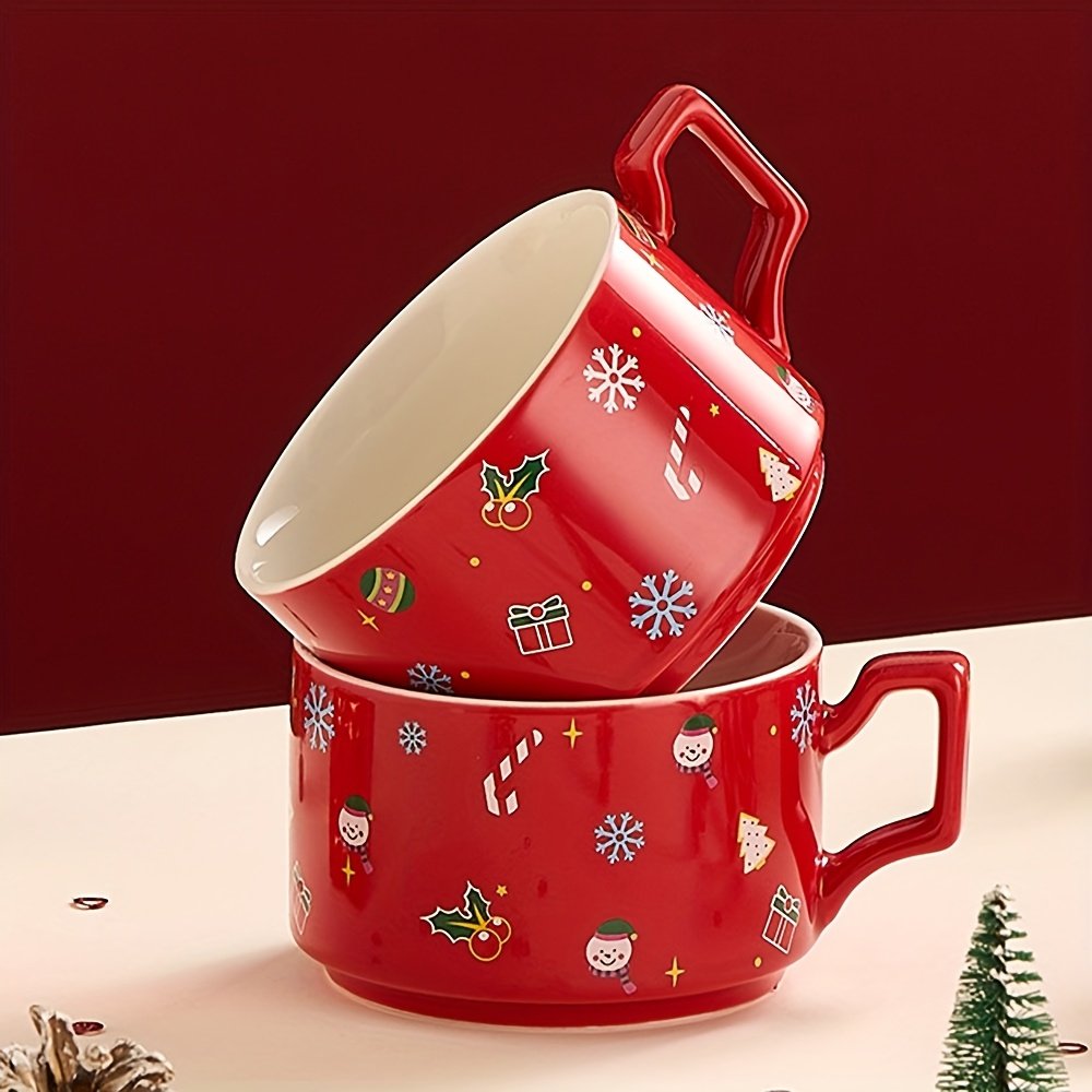 Design: Features vivid Christmas motifs like reindeer, snowflakes, and Santa Claus. The bright red color and cute reindeer lid knob bring strong holiday vibes.