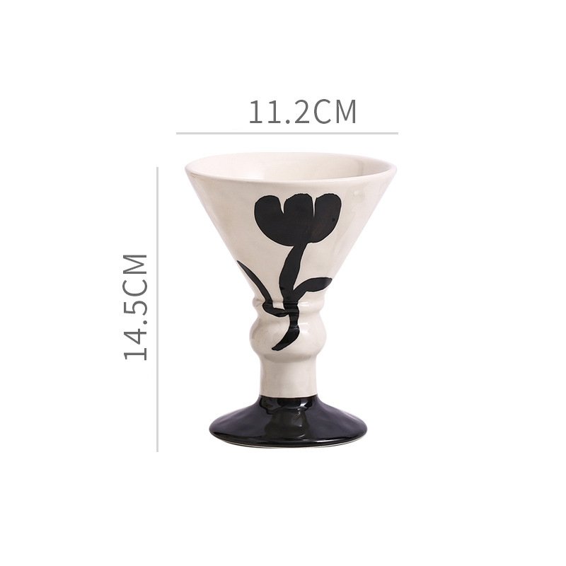 Contrast Floral Ceramic Pedestal Bowls (Black & White Artistic Design)