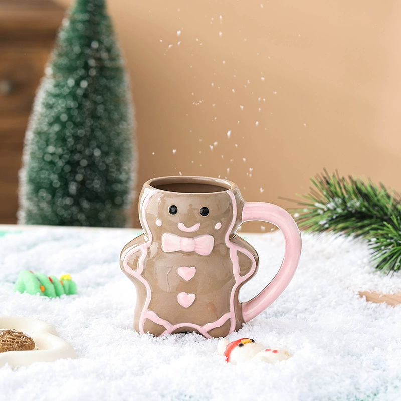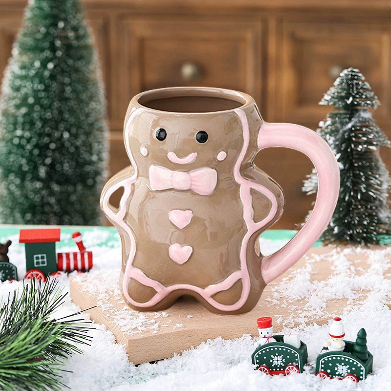 Cute Gingerbread Man Shaped Ceramic Mug with Pink Accents – Perfect Christmas Holiday Gift & Festive Drinkware