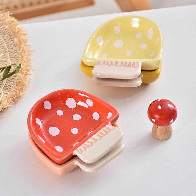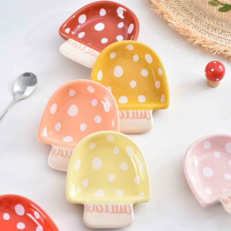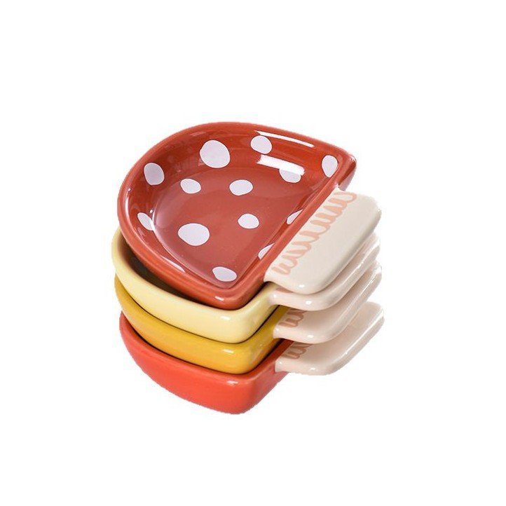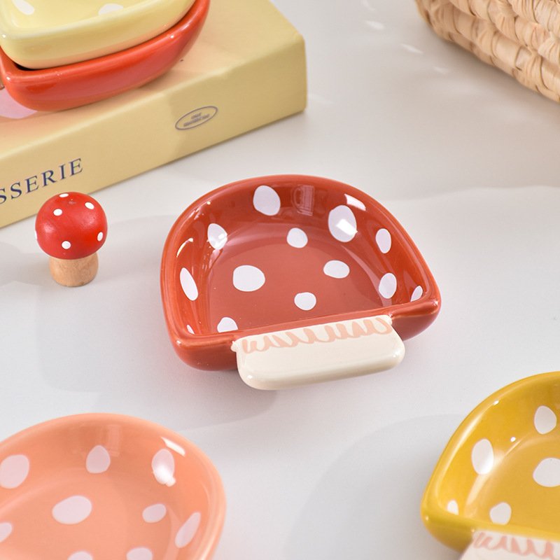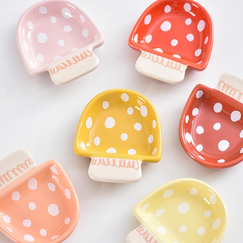 Cute Mushroom-Shaped Ceramic Sauce Dishes – Polka Dot Pattern Condiment Bowls for Kitchen & Table Decor