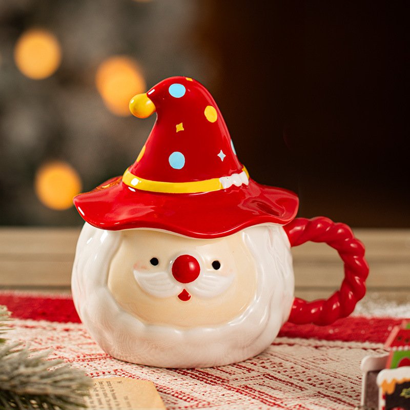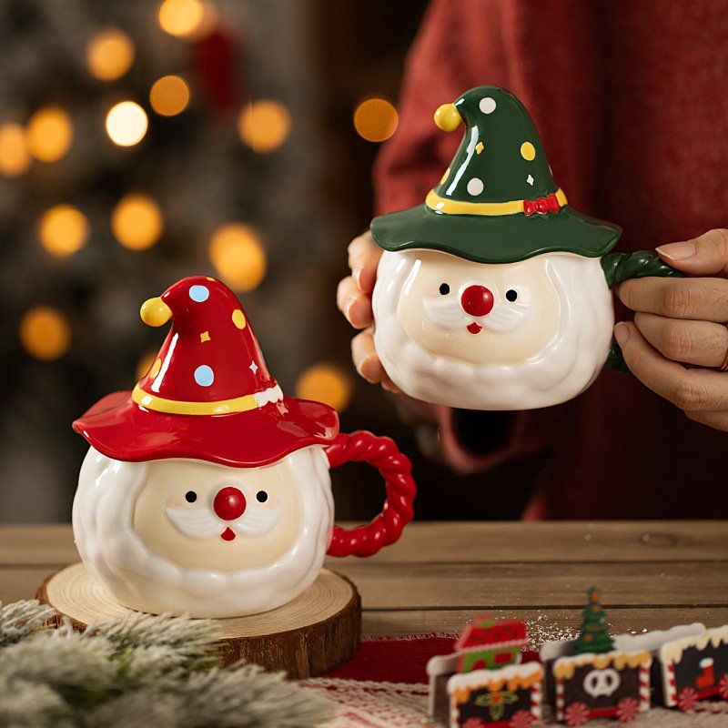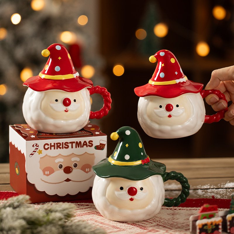 Cute Santa Claus Ceramic Mugs with Lid – Perfect Christmas Gift & Festive Drinkware