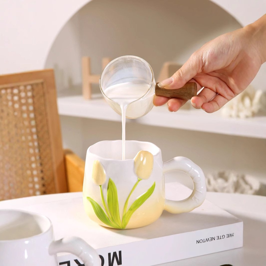 Elegant 3D Tulip Ceramic Mug: A Floral Delight for Your Daily Beverage Rituals