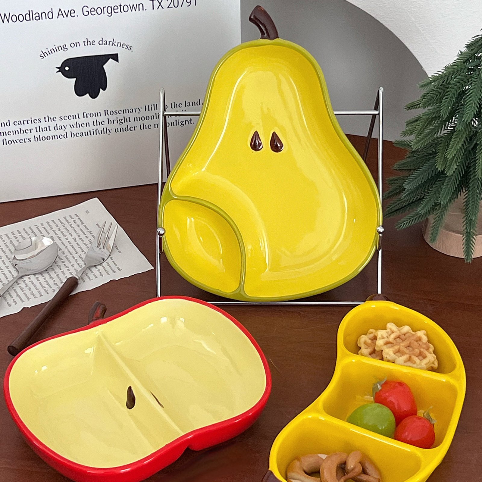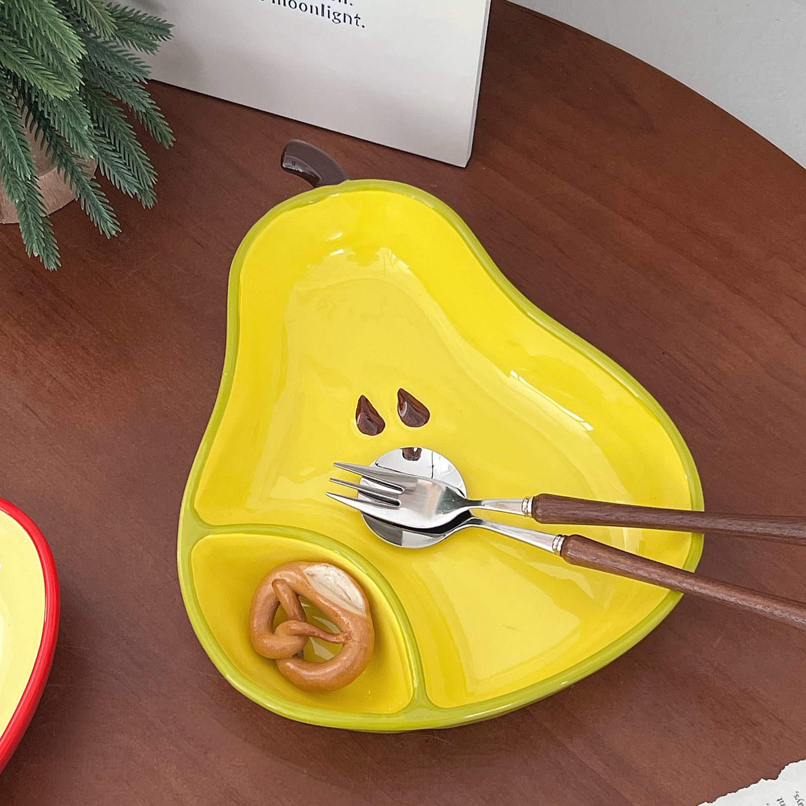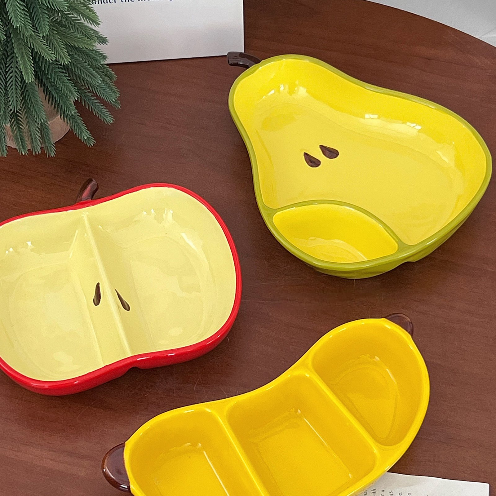 “Fruit-Shaped Divided Ceramic Serving Dishes: Playful Pear/Apple Design for Snacks & Decor”