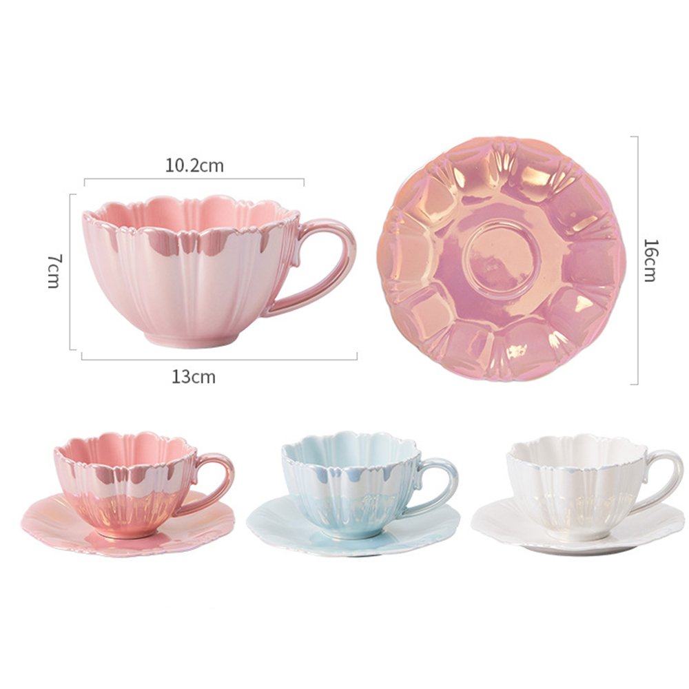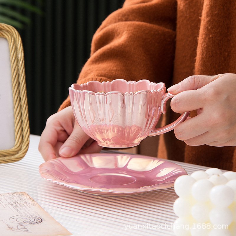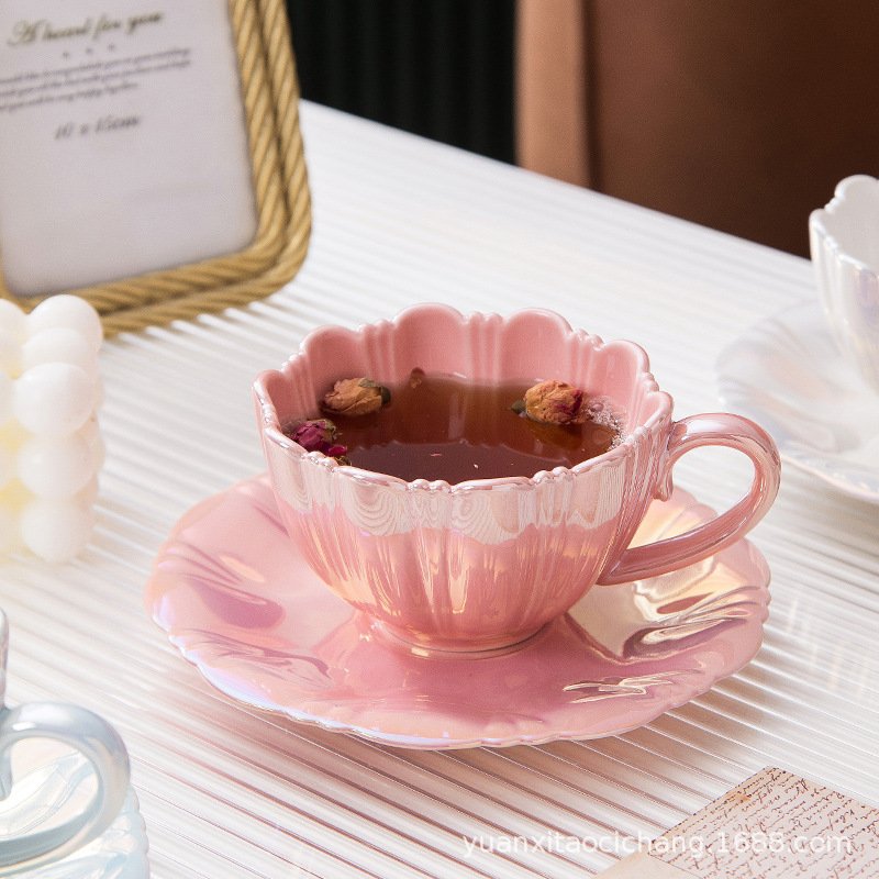 Glamorous Iridescent Pink Tea Cup and Saucer Set: Elevate Your Afternoon Tea Ritual