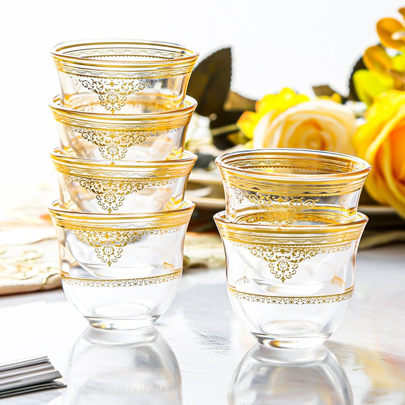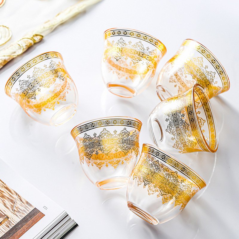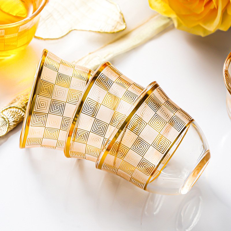 Golden-Embossed Glass Teacups Set: Add Elegance to Your Tea Time