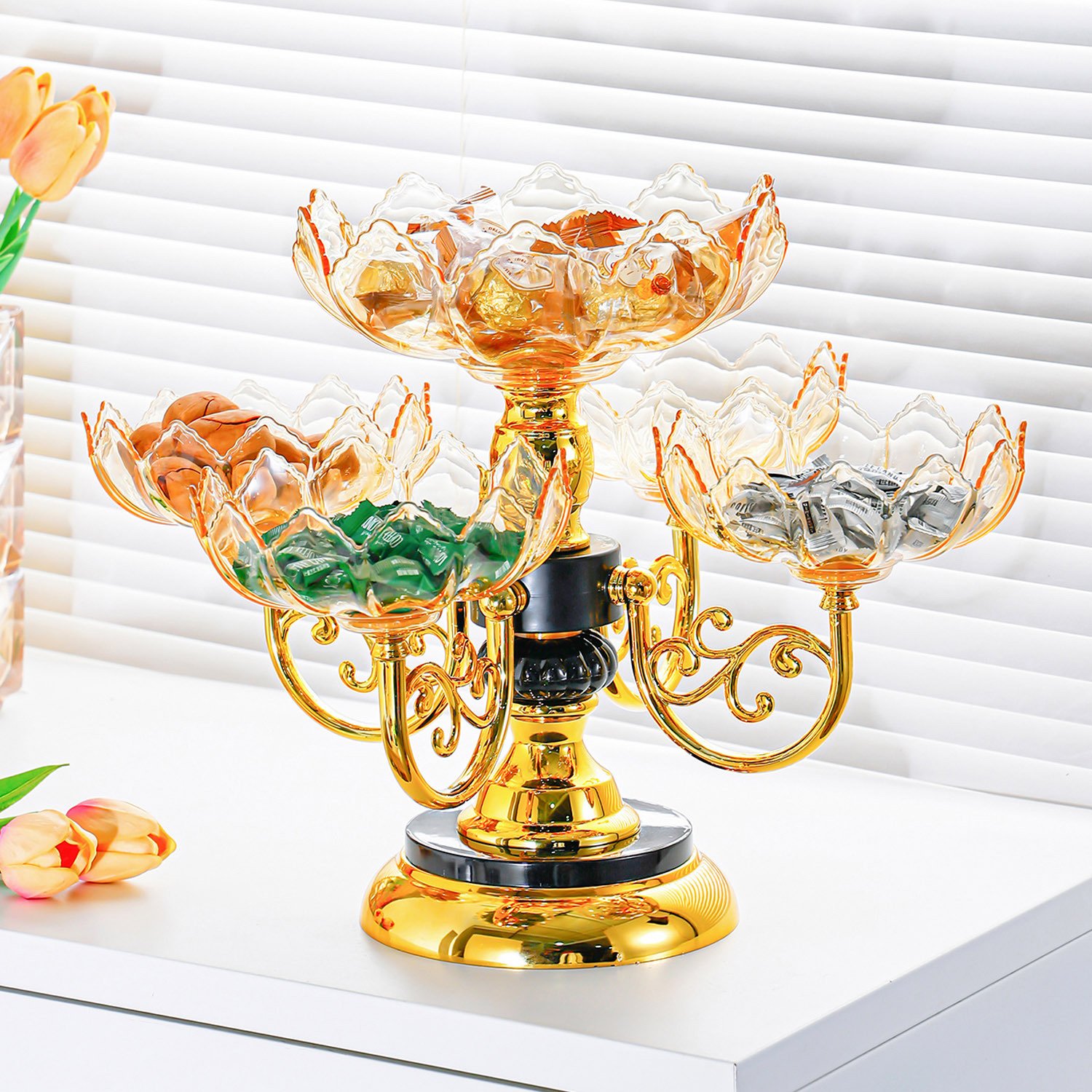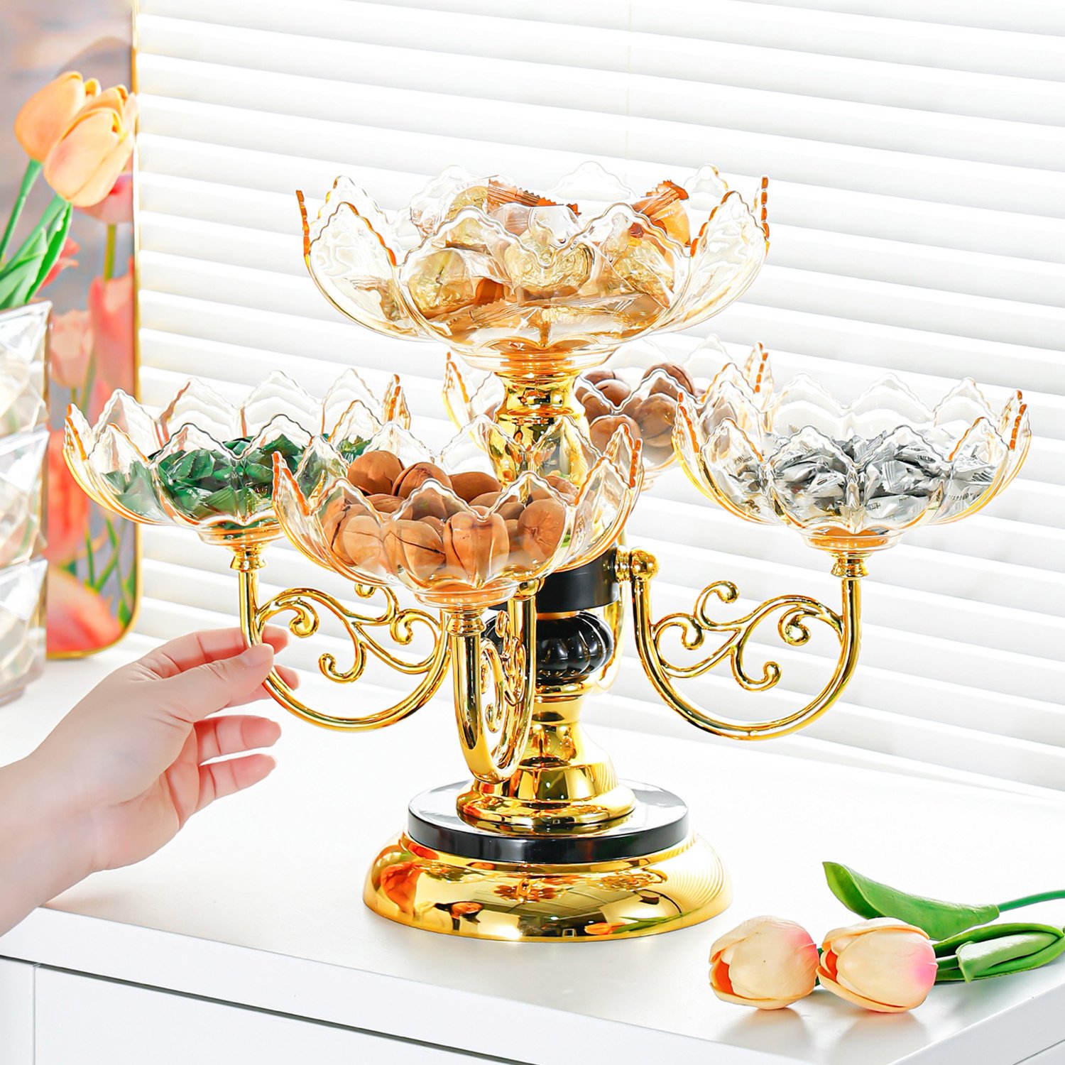 Elegant and Decorative Design: Features a golden, ornate metal base and crystal – like bowls with scalloped edges, adding a touch of luxury to any home or party setting.