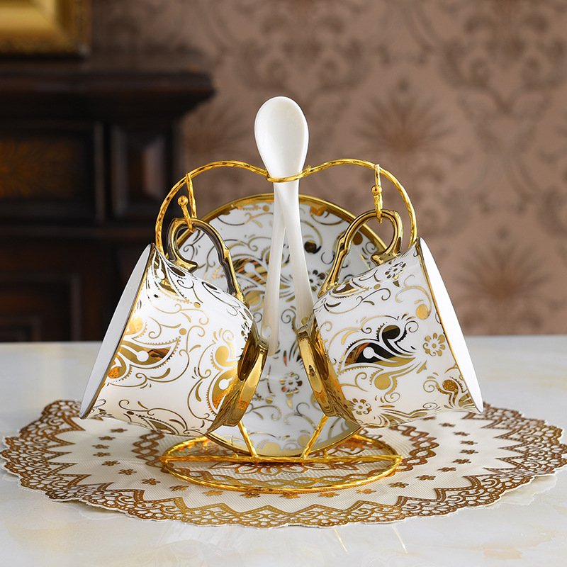 Space-Saving Rack Included:The golden hanging rack keeps cups organized and displays the set beautifully, saving counter space.