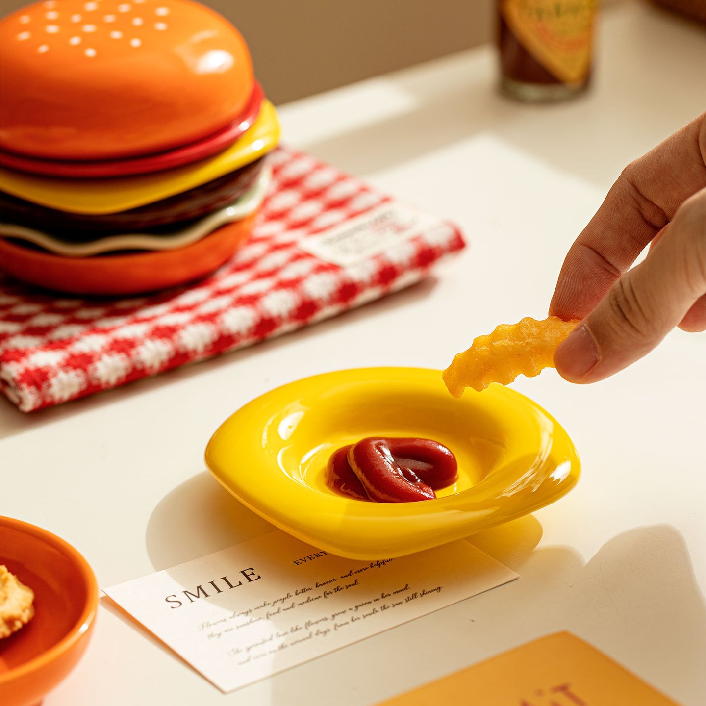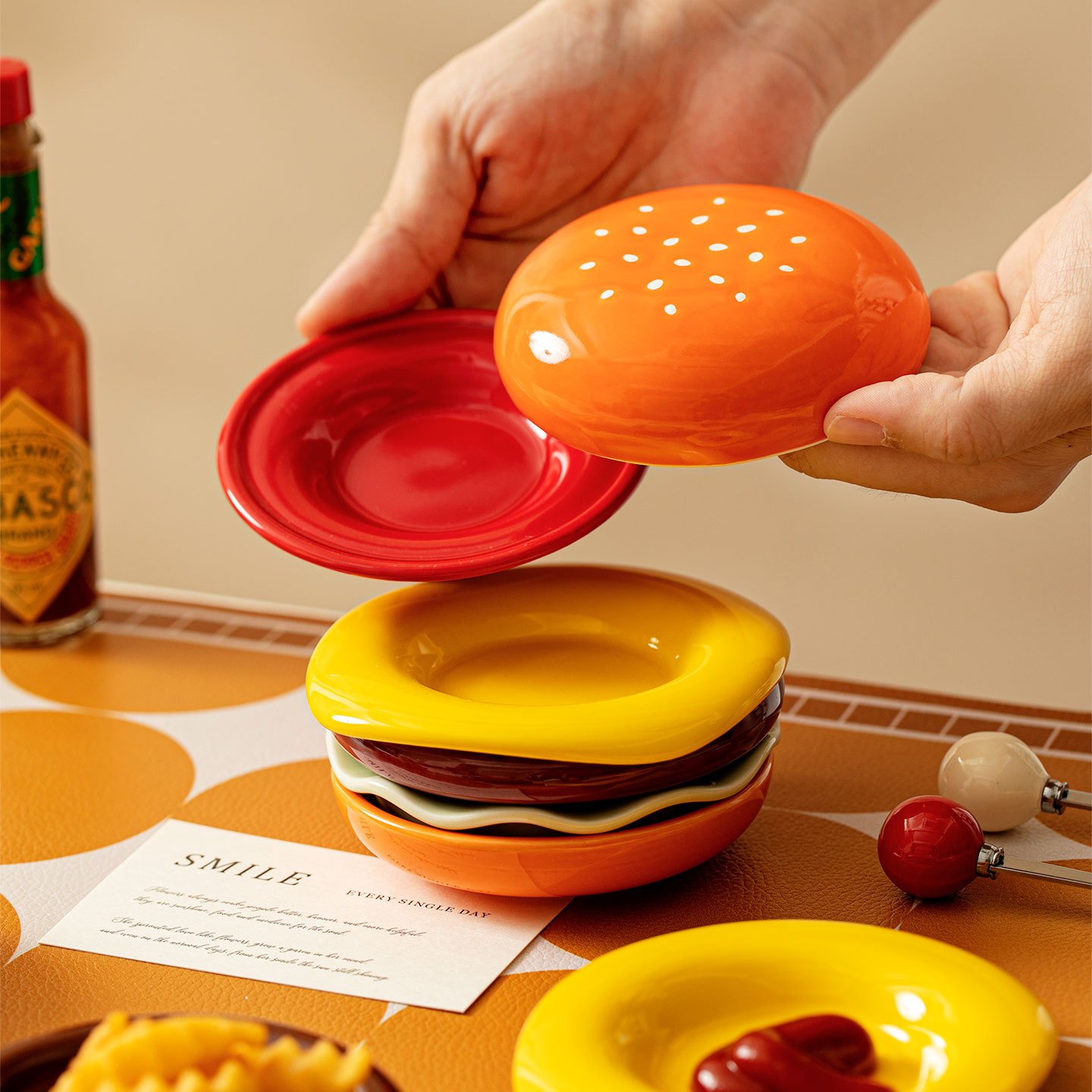 Unique Design: Mimics the layers of a hamburger, adding a fun and playful touch to your dining experience.