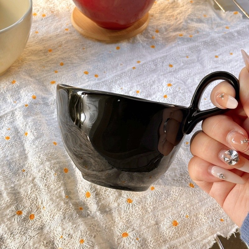Sleek Black Ceramic Coffee Cup – Minimalist Design with Elegant Handle for Modern Home & Café Use