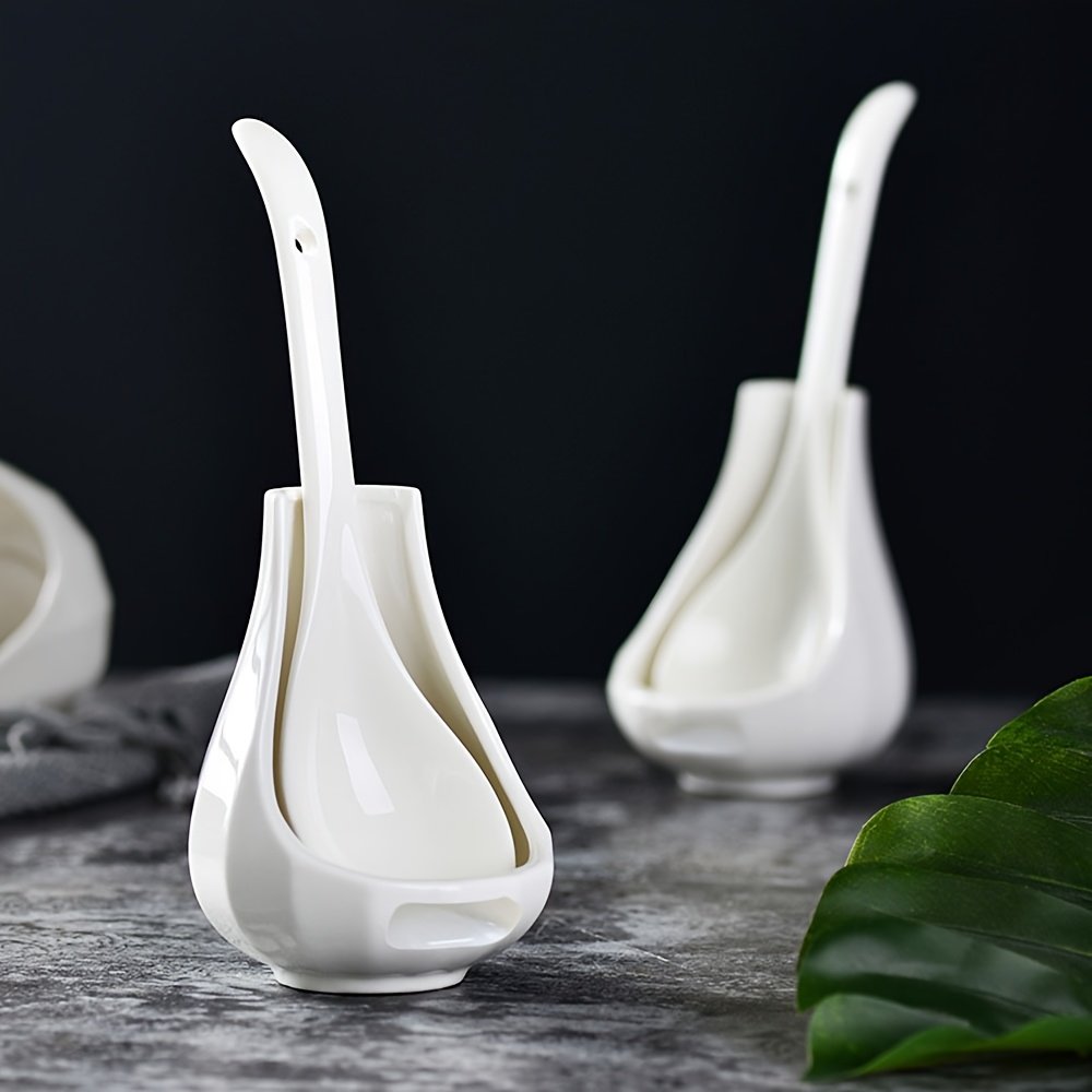 Sleek White Ceramic Soup Spoon with Holder: Elevate Your Dining & Kitchen Organization