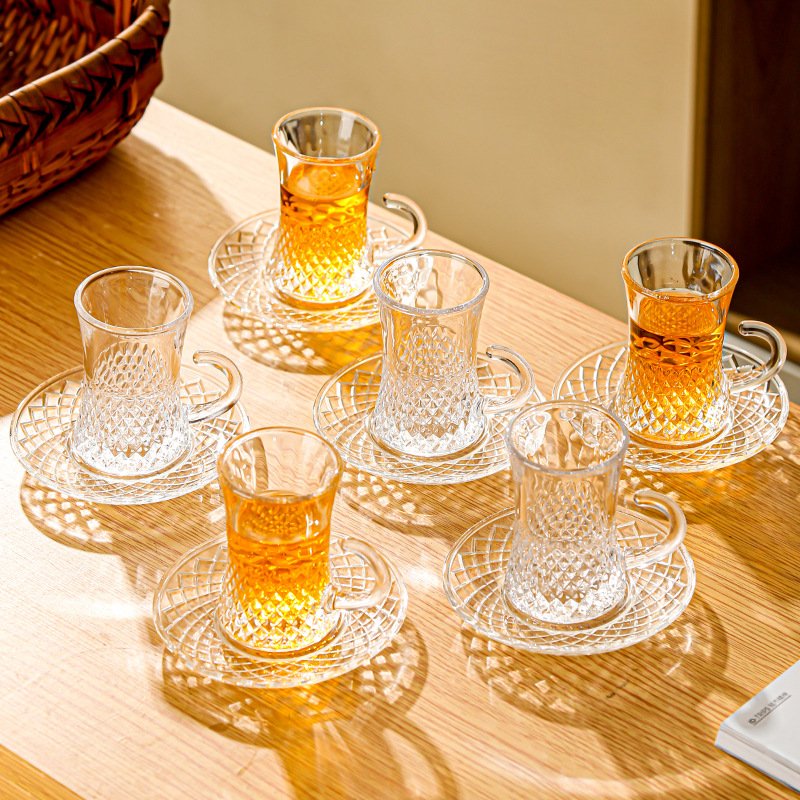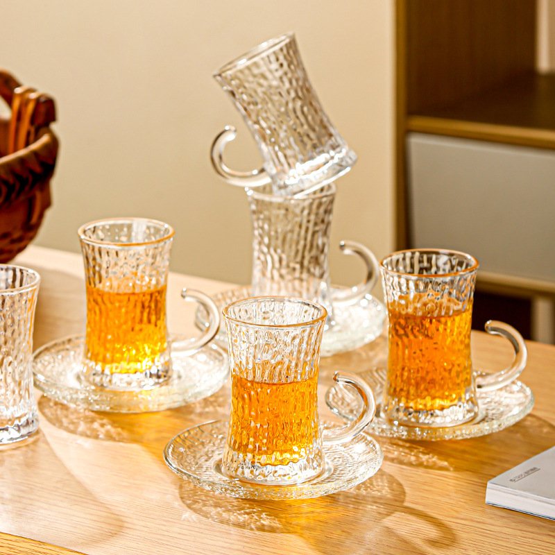 Textured Glass Tea Cup and Saucer Set: Elevate Your Tea Ceremony with Artistic Clarity