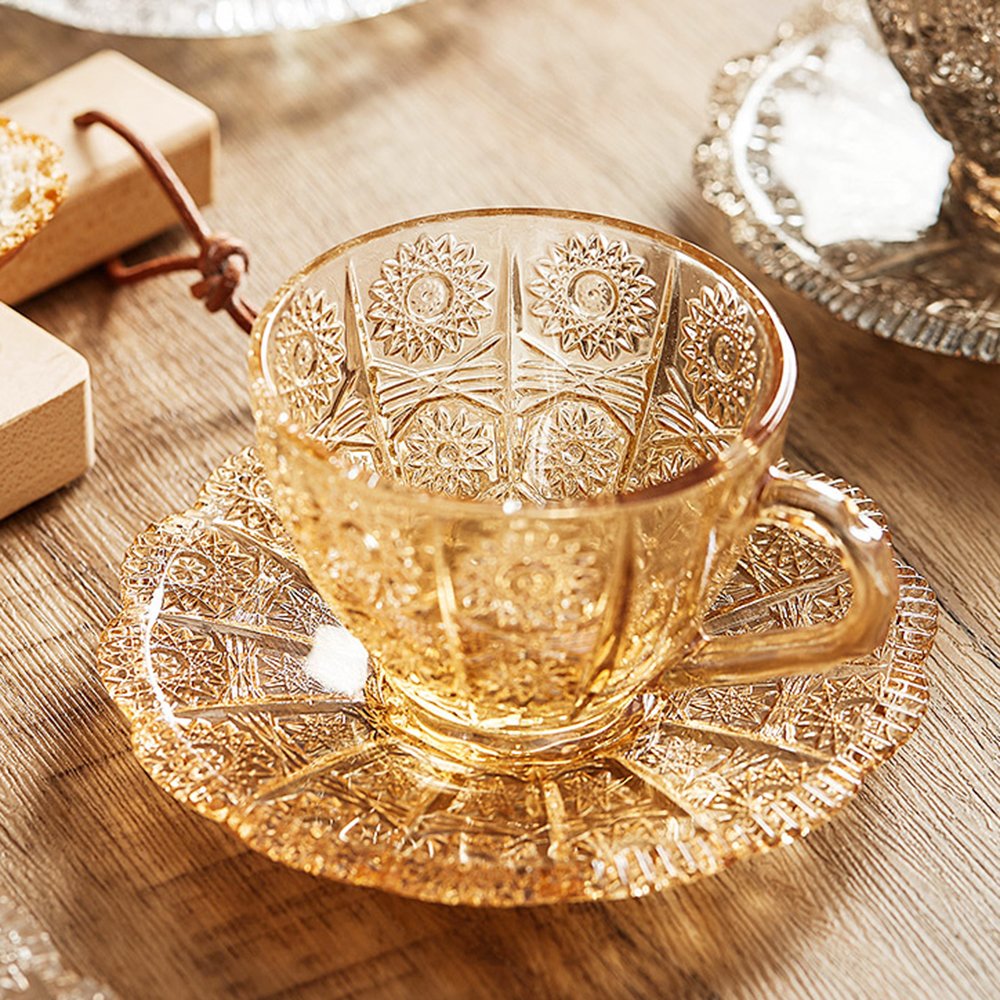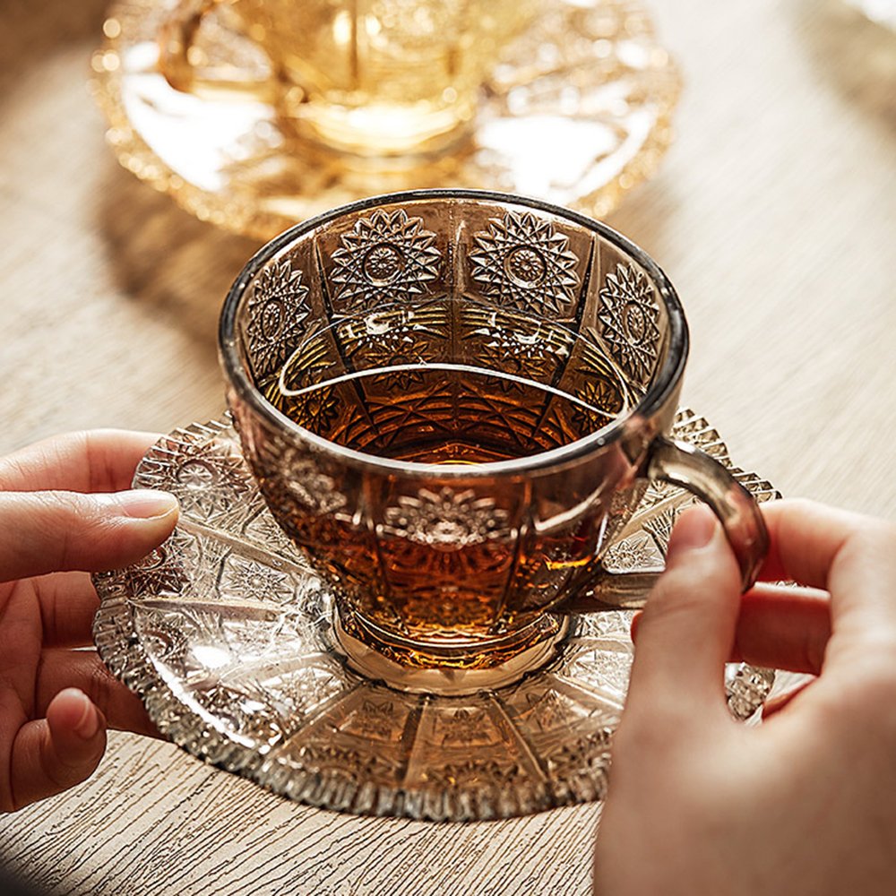 Vintage Carved Glass Cup & Saucer: Sparkle in Every Sip