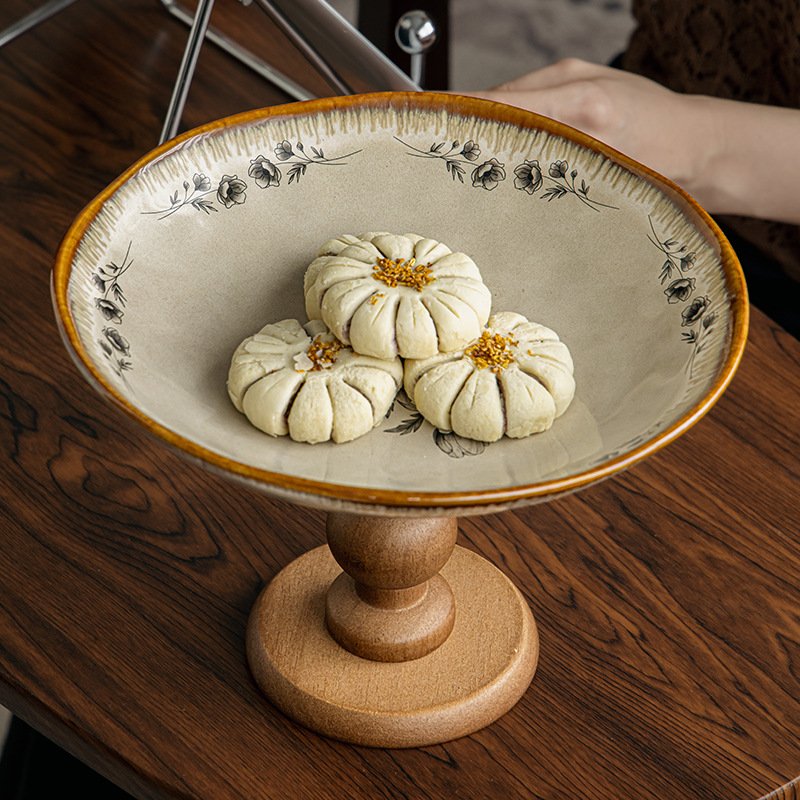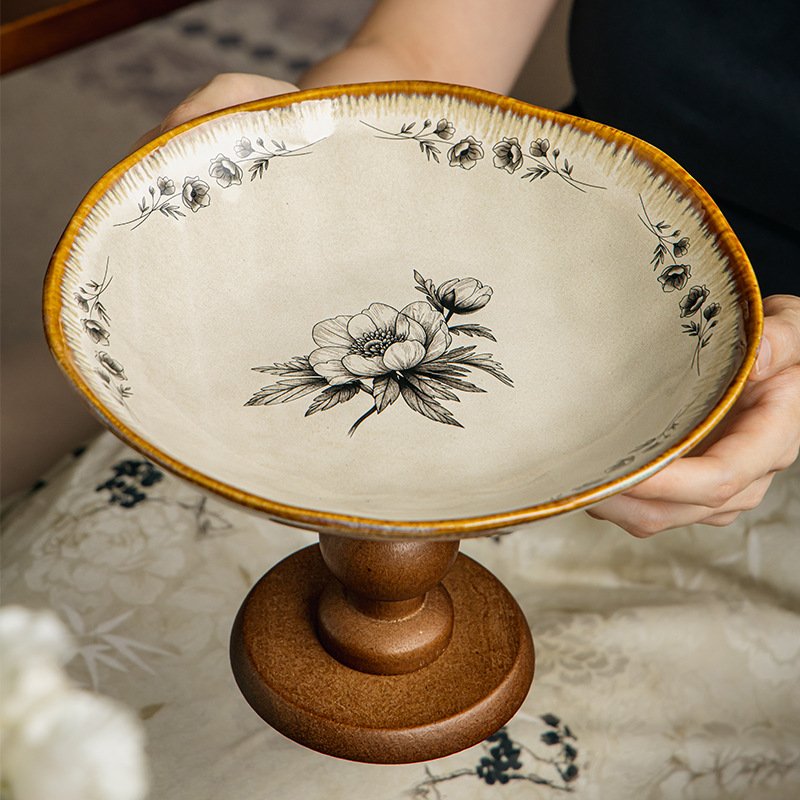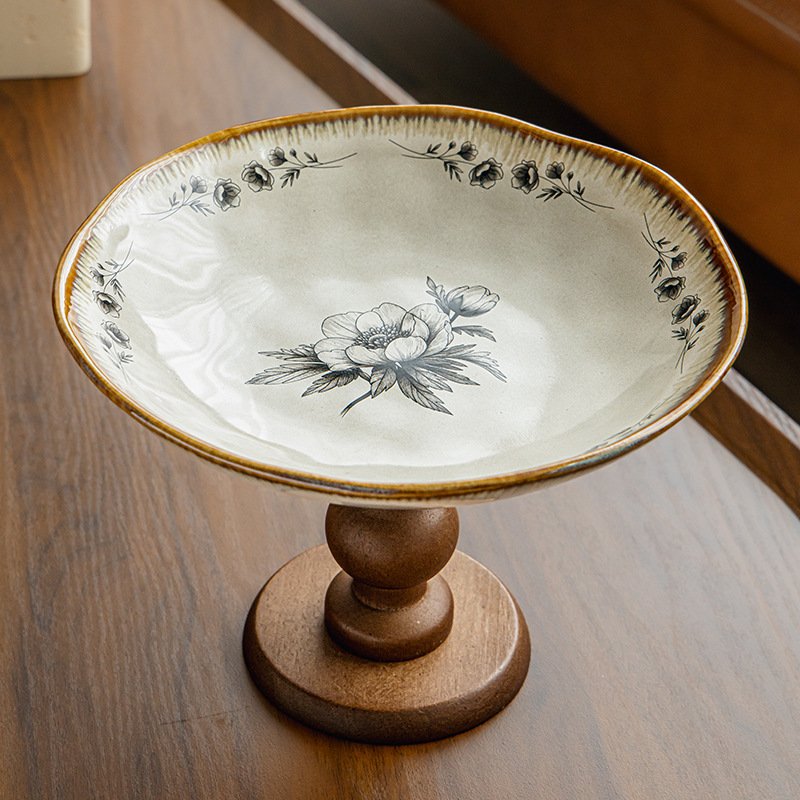 Vintage Floral Ceramic Pedestal Serving Dish: Infuse Retro Elegance into Your Dining