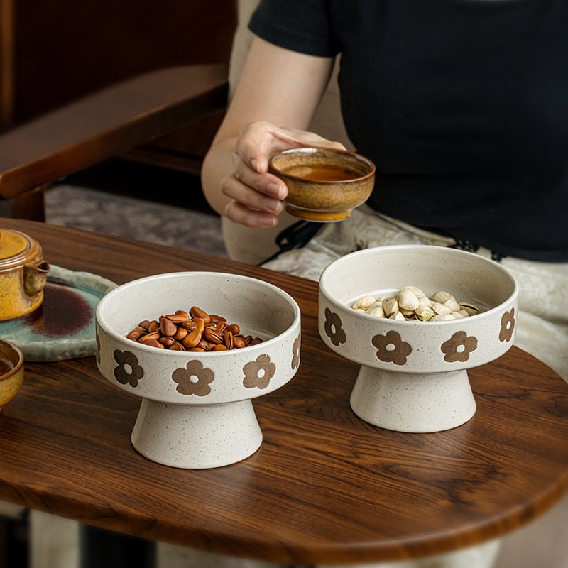 Vintage Floral Speckled Ceramic Pedestal Fruit Bowl: Add Retro Charm to Your Home