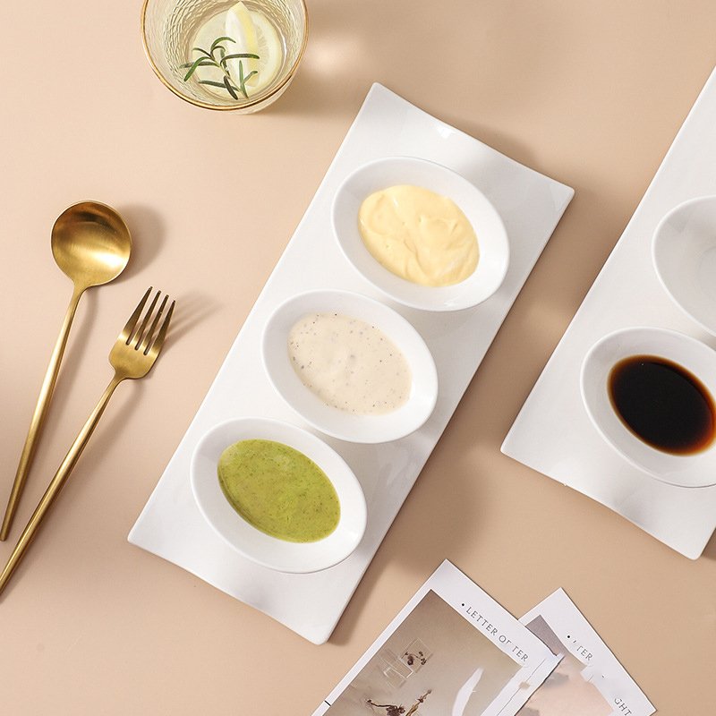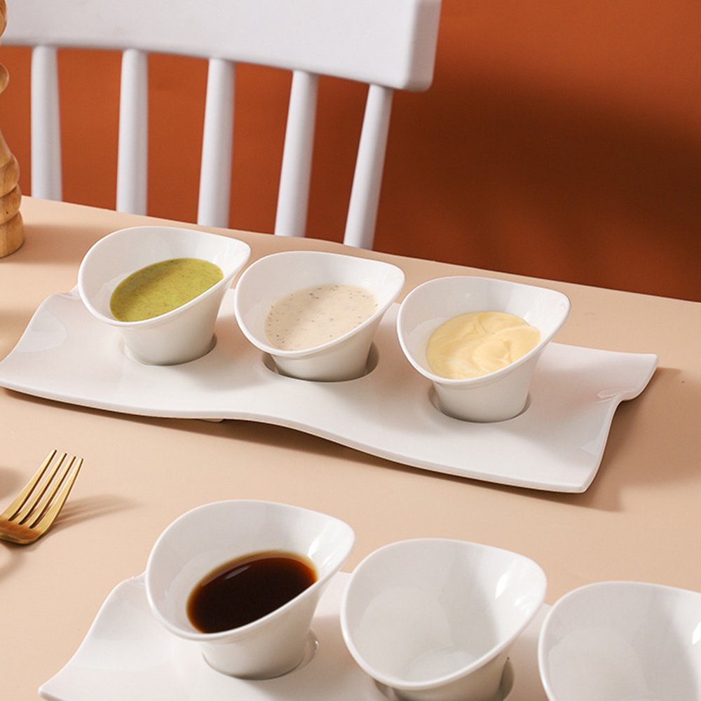 White Ceramic Sauce Dish Set with Tray – Multi-Sauce Serving Solution for Dining & Entertaining