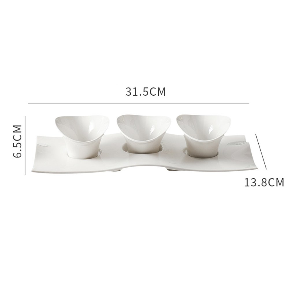 • Elegant & Organized Serving: Features a sleek white ceramic design with multiple sauce bowls on a matching tray, keeping different dips, sauces, or condiments neatly organized and easily accessible.
